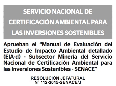 El día 30.12.15 se publicó en El Peruano La Resolución Jefatural Nº 112-2015-SENACE/J en el que se aprueba el Manual de evaluaci&oa... ...